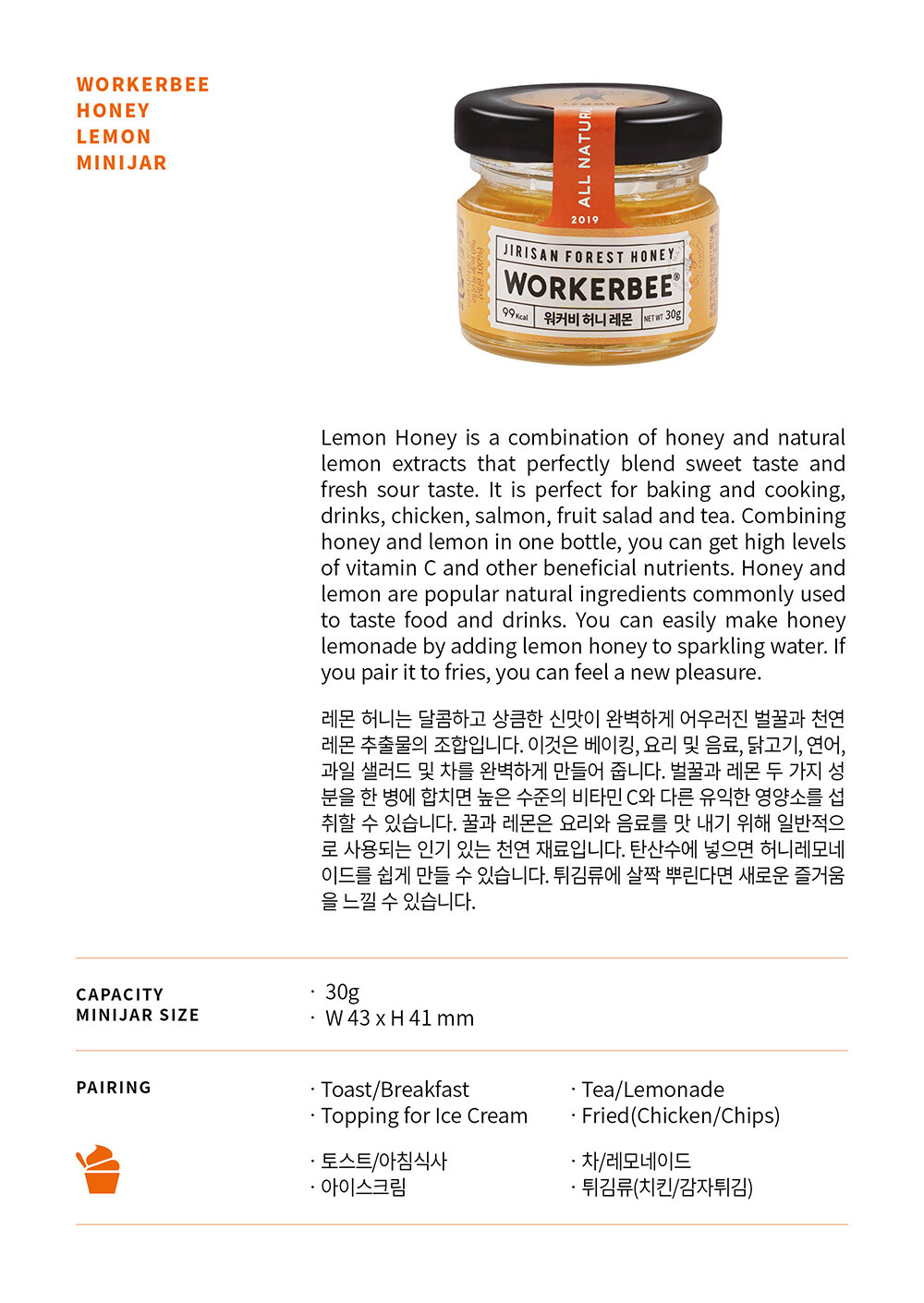 ㆍ우리의 모든 제품은 국내 양봉가가 생산한 벌꿀로 제조되었습니다.