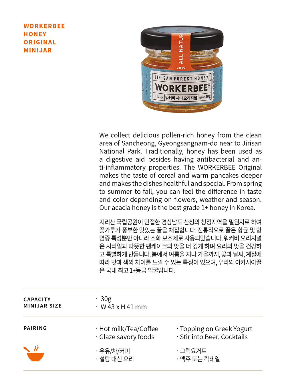 ㆍ우리의 모든 제품은 국내 양봉가가 생산한 벌꿀로 제조되었습니다.