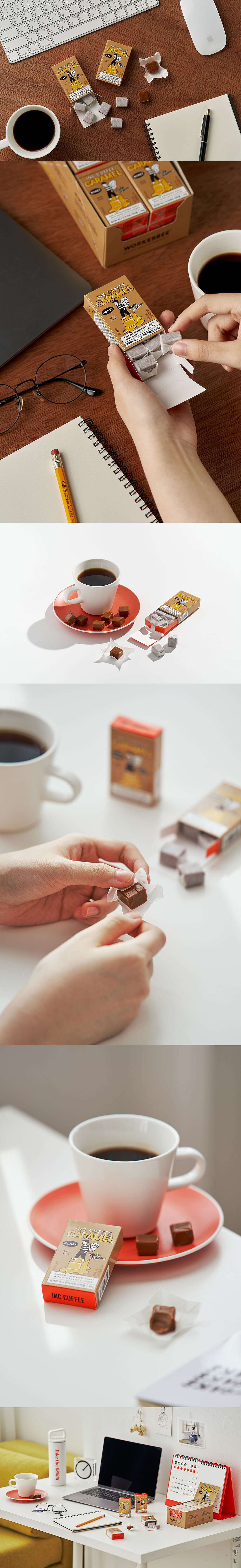 숨막히는 회사생활 당 떨어지는 시간 에너지를 채워줄 꿀 충전, 정신없는 직장인에게 필수인 카페인 커피 충전! 아이디어가 필요할 때, 잠시 숨 돌려야 할 때, 에너지가 필요할 때, 한걸음 더 나아가야 할 때, 맛있고 건강한 꿀 충전과 향긋하고 편안하게 커피 충전이 가능한 ‘워커비 허니 인크커피 카라멜’